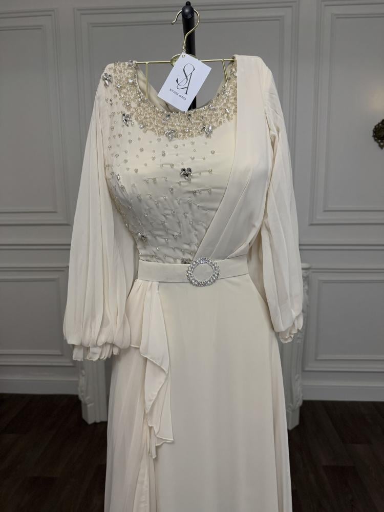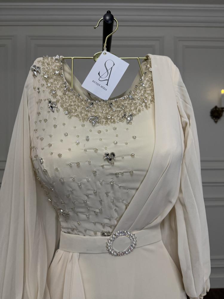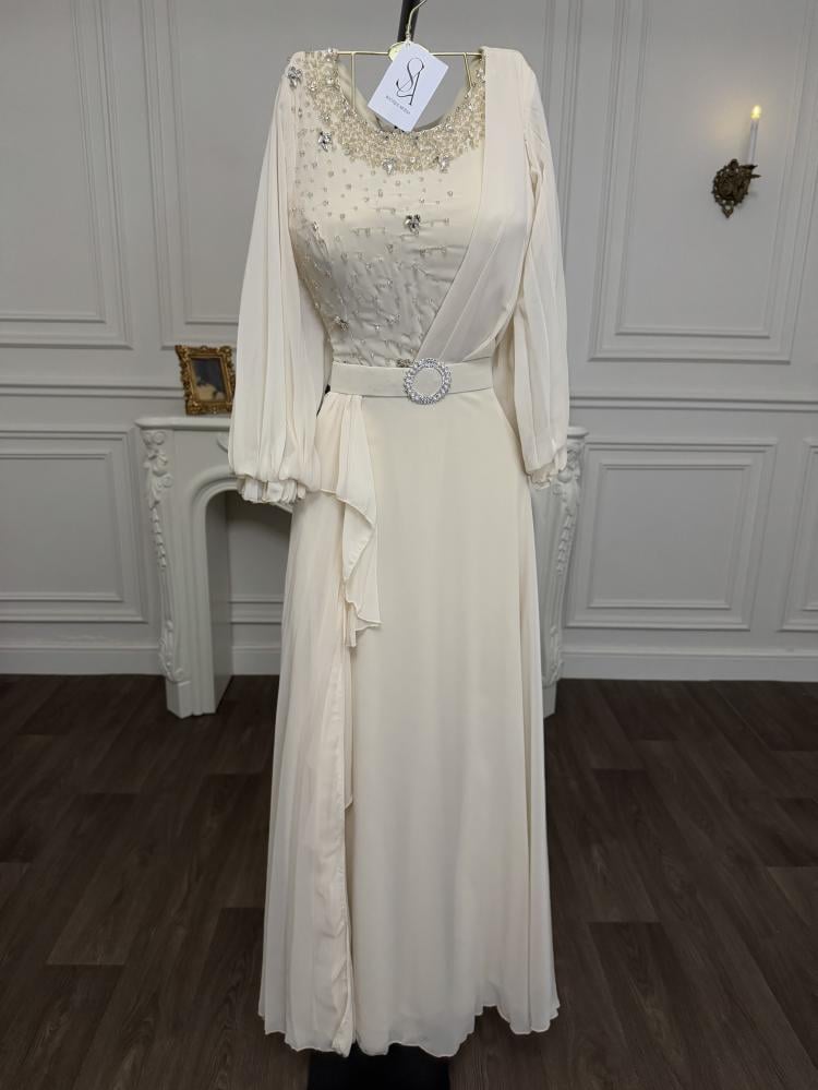 فخمة ومثيرة للاهتمام صُنع من الشيفون الناعم ، مما يضمن الراحة والاستدامة على المدى الطويل. يمكن ارتداء هذا الفستان في المناسبات المختلفة مثل الاستقبالات والعزومات وحفلات الأعراس.
