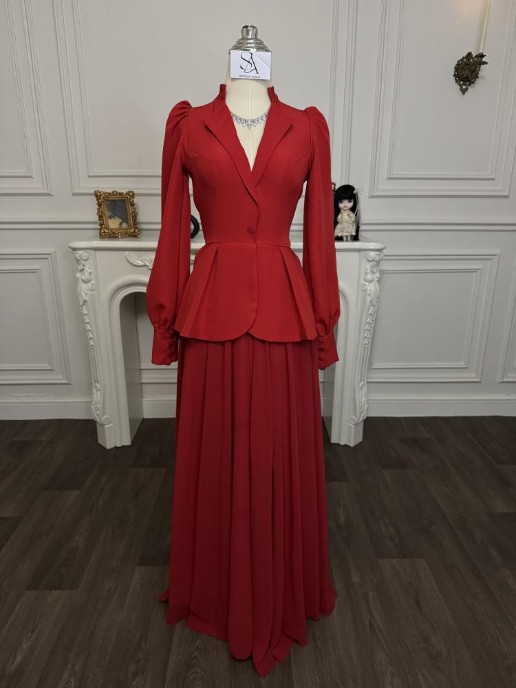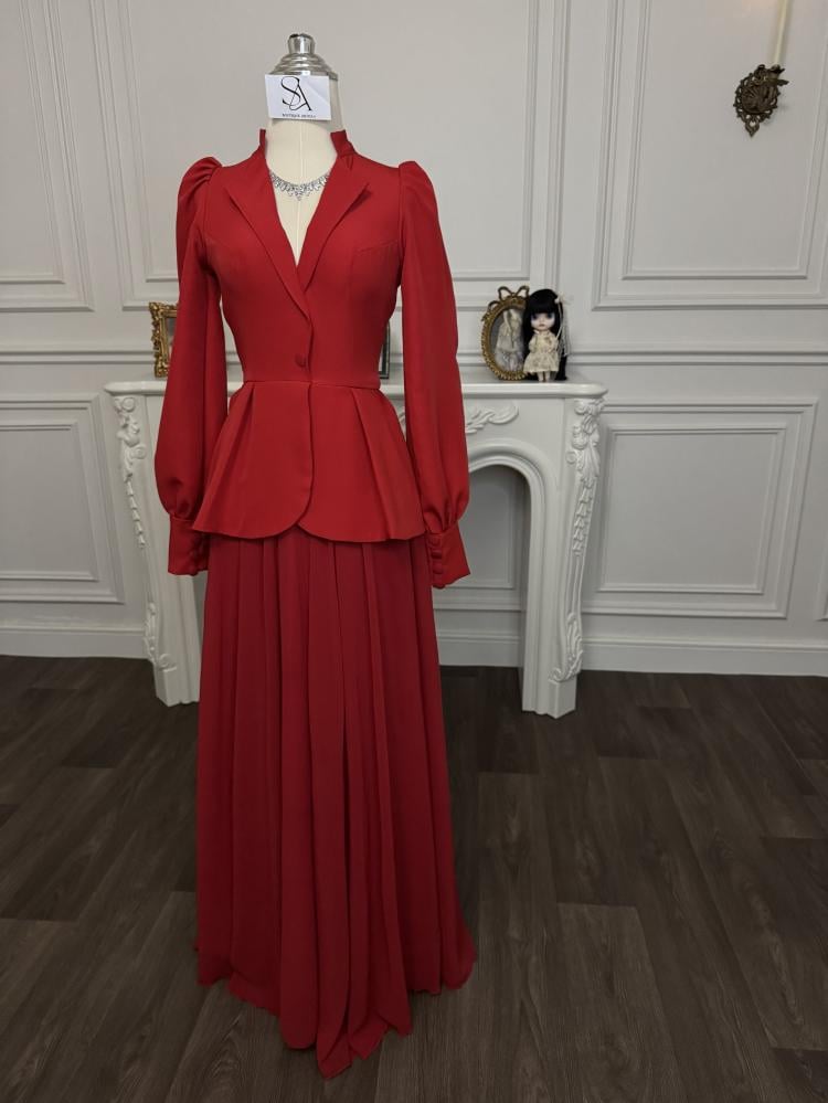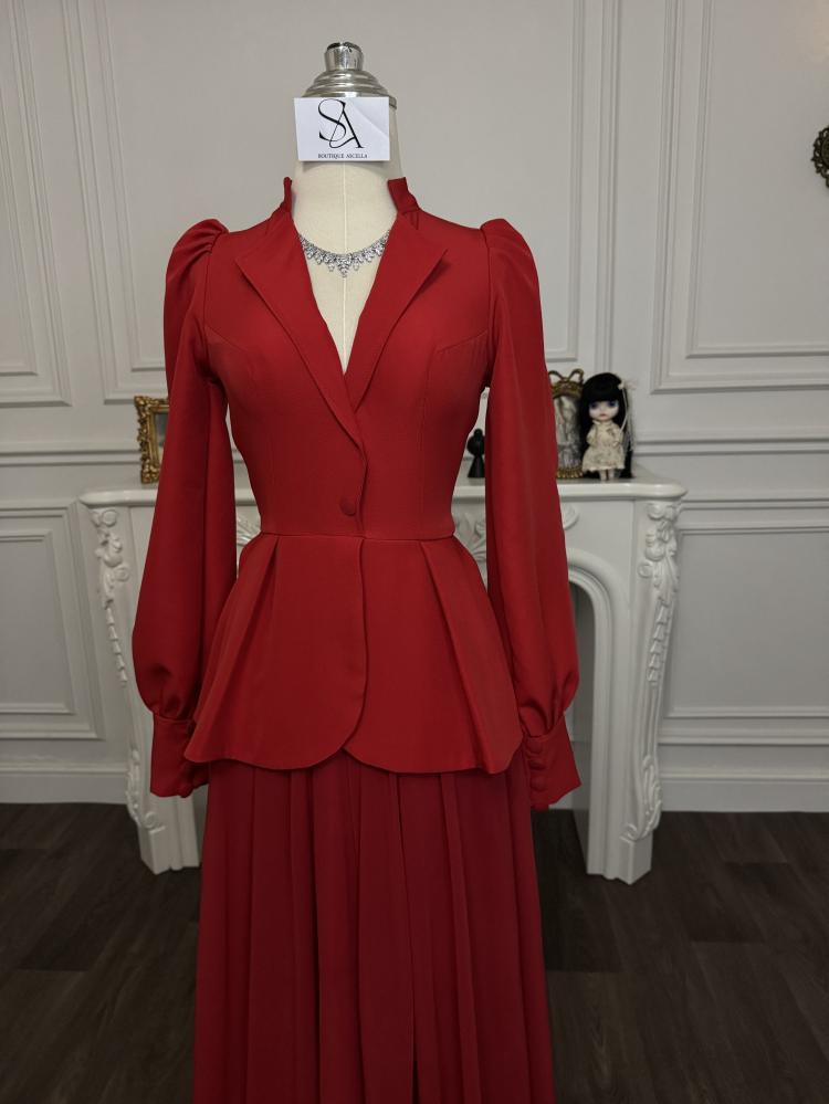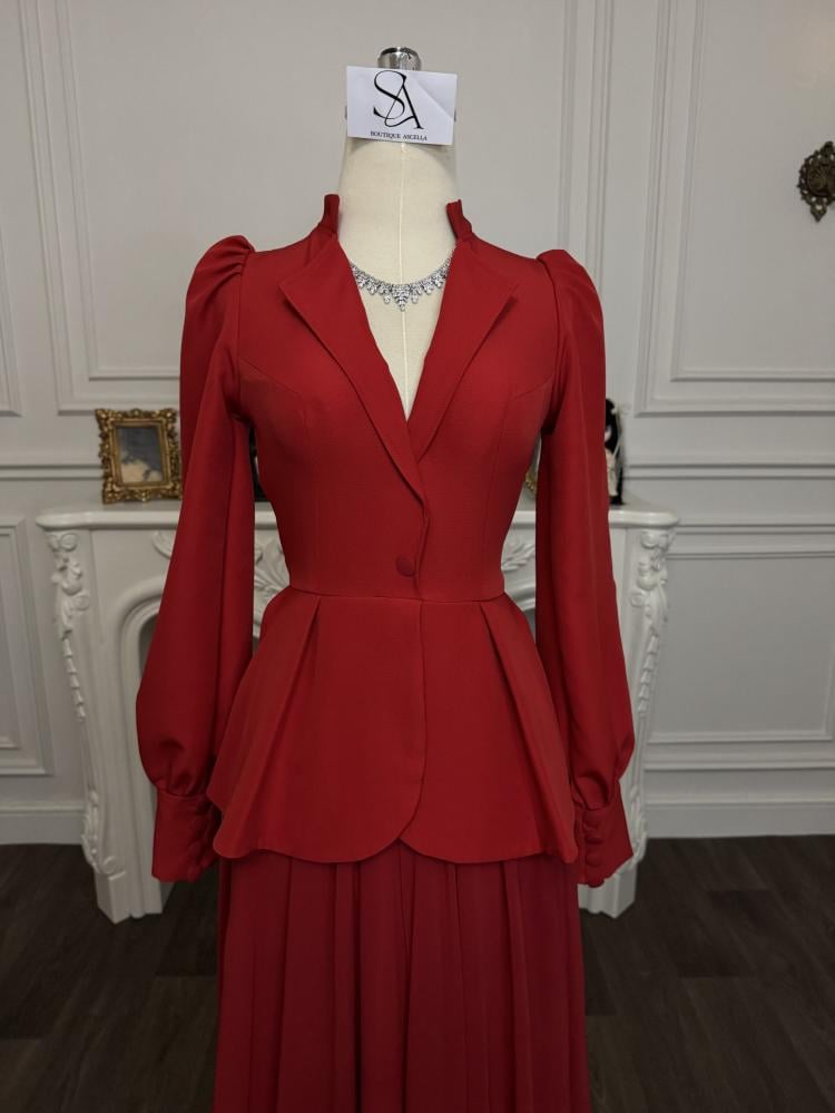 استعدي للسحر والجمال مع فستان ايلي من قماش باربي لكرا مع الشيفون الرائع! يأتي هذا الفستان بلون احمر ساحر وجذاب يضفي لمسة من الأنوثة والرقة على إطلالتك. مصمم من قماش مريح ليلائم شكل جسمك بشكل مثالي.