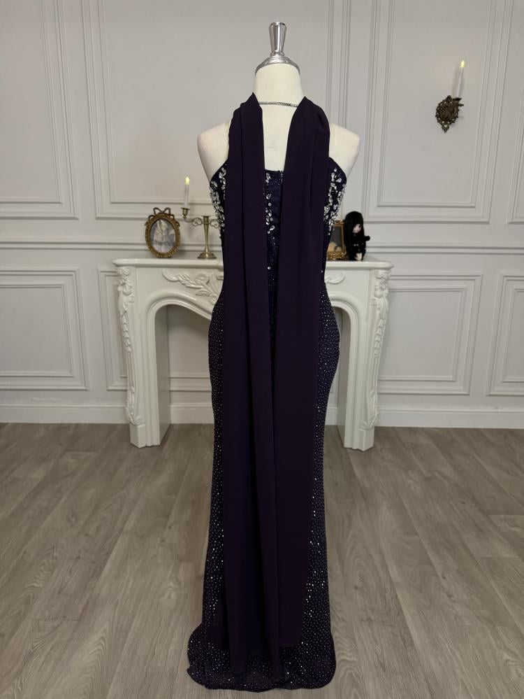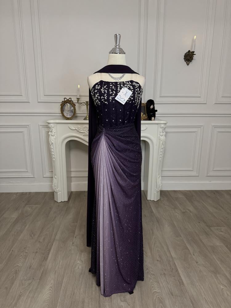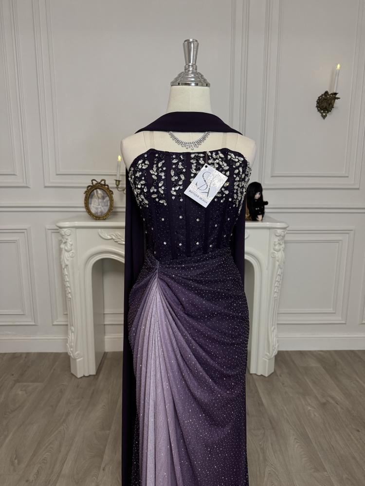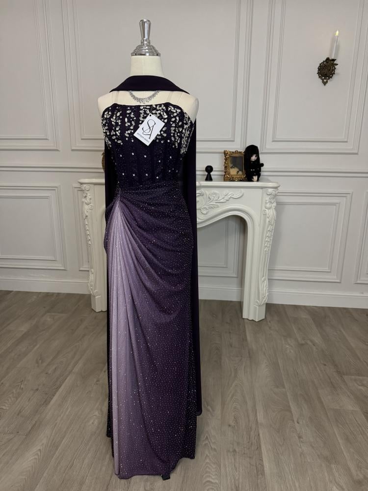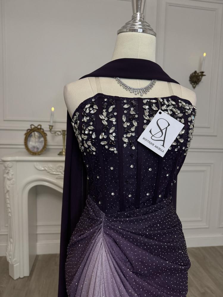 فستان موف ملكي بتدرجات براقة وتطريز فاخر، تصميمه ينحت القوام ويمنحك حضور ملوكي يأسر الأنظار💜.