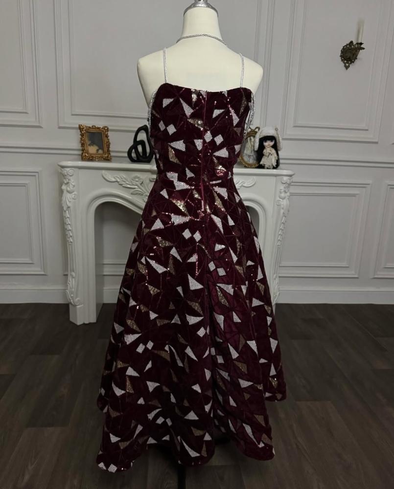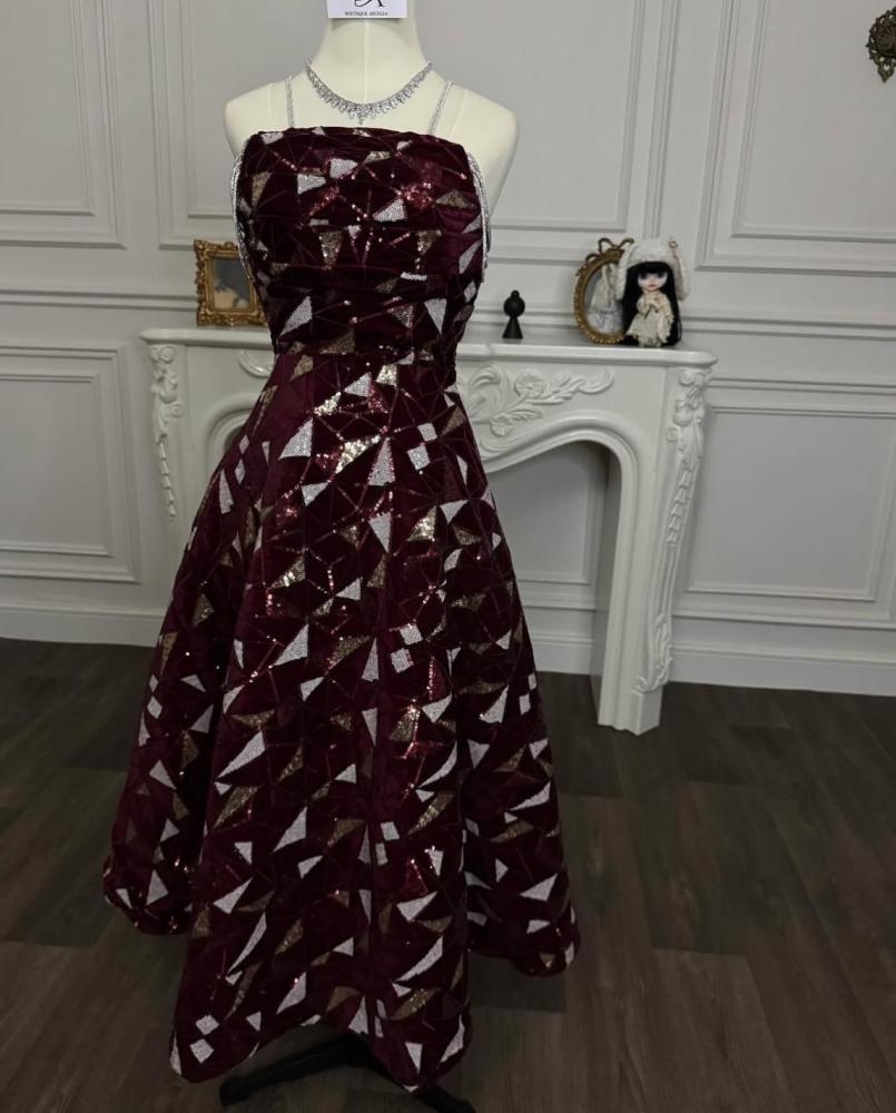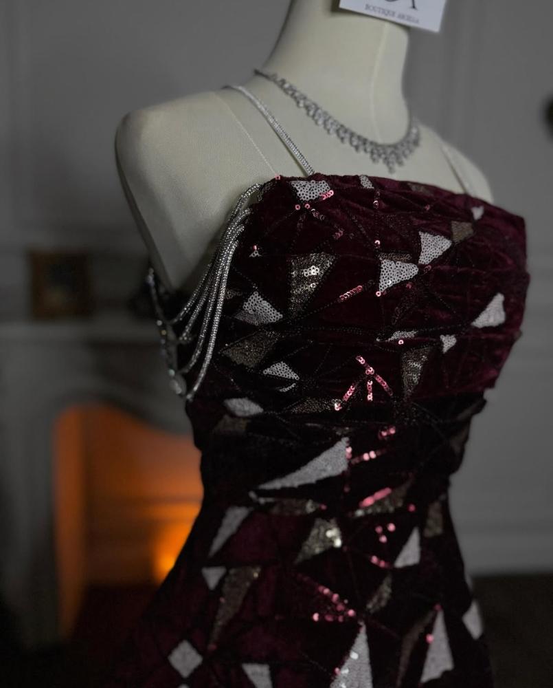 فستان تاري بتصميم أنيق يجمع بين الفخامة والأنوثة. مصنوع من قماش القطيفة الناعم مطرز ترتر بتصميم كلوش، مما يضفي على الفستان حجمًا مميزًا وانسيابية ساحرة. يتميز بلونه البرقندي العميق والجذاب الذي يعكس الرقي. تصميم الصدر توب بأكمام اكسسوار علاقي يبرز جمال الكتفين بأسلوب أنثوي راقٍ. بطول 130 سم، يُعد هذا الفستان خيارًا مثاليًا لإطلالة ملكية في المناسبات الفاخرة.
