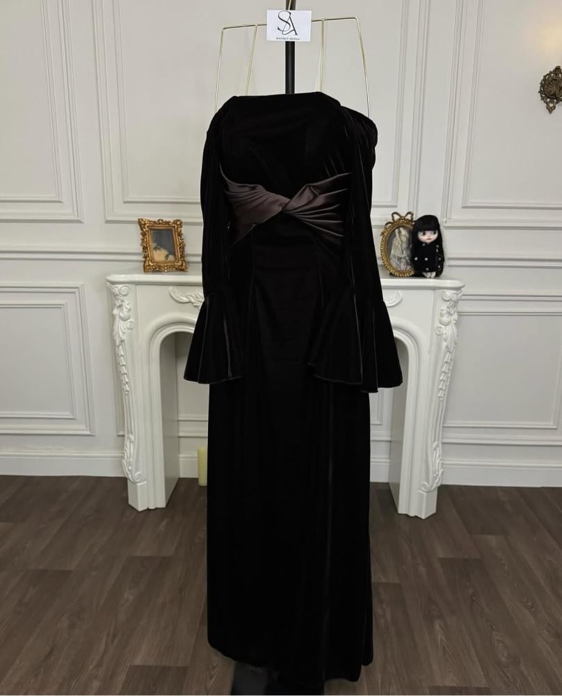 فستان "حناني" هو رمز الأناقة والرقي، بتصميم يجمع بين البساطة والفخامة. يتميز بألوانه الداكنة التي تضفي لمسة من الغموض والجاذبية، مما يجعله خيارًا مثاليًا للسهرات والمناسبات الخاصة.