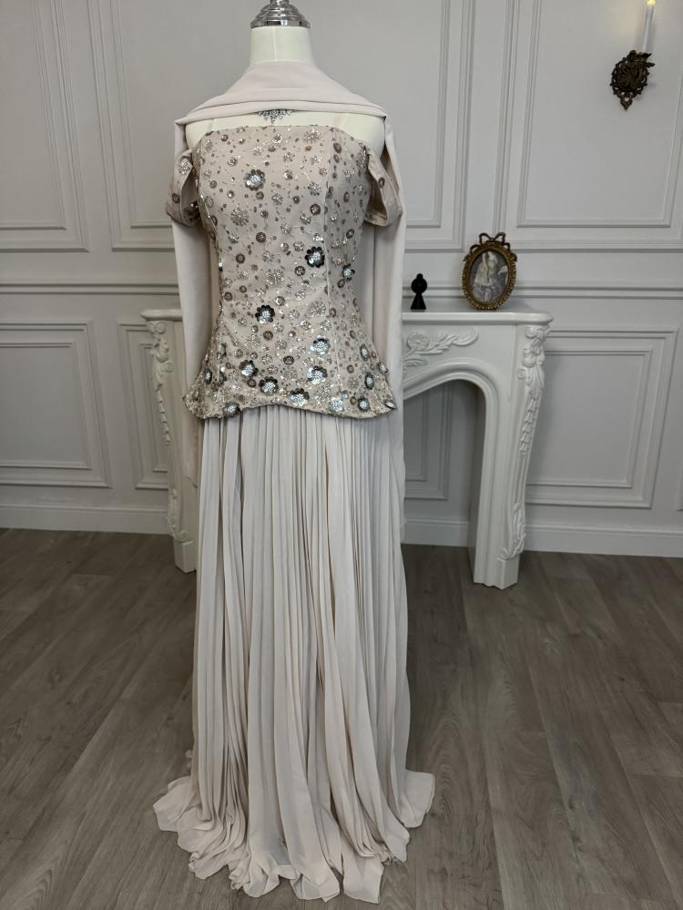 • فستان سهرة شيفون مطرز شك هو قطعة أنيقة وجميلة من الملابس المصممة خصيصًا للمناسبات الرسمية والحفلات الكبيرة.