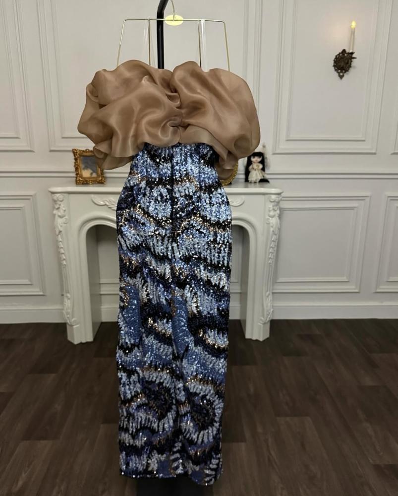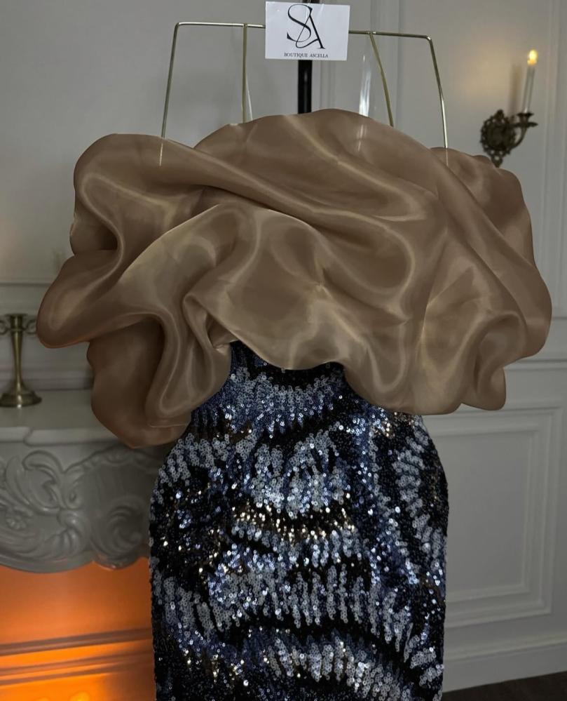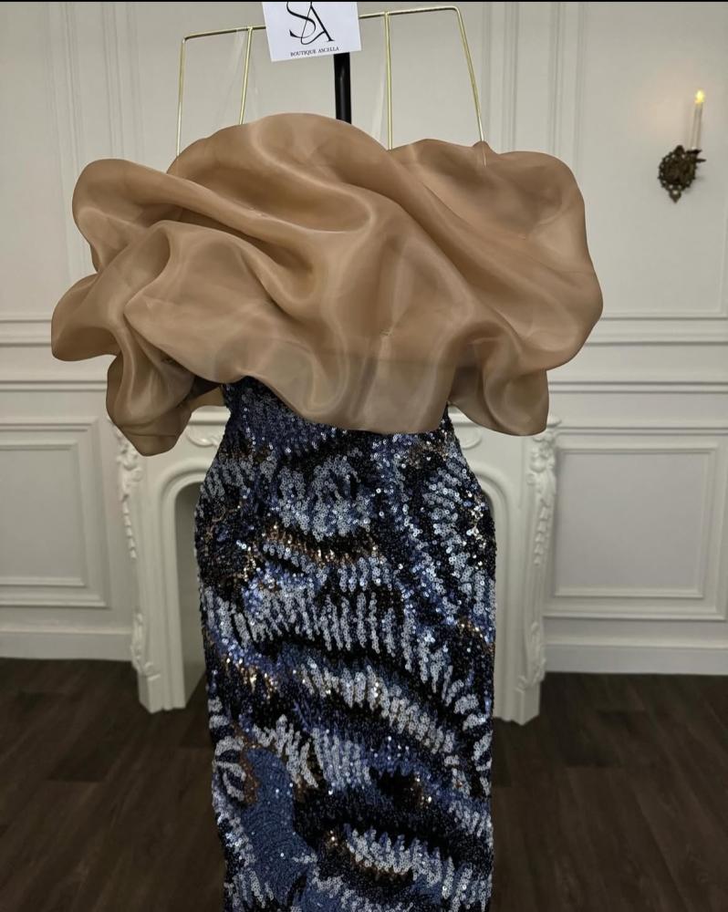 "تميزي بإطلالة ساحرة مع فستان طيف المصمم بجاذبية استثنائية! مصنوع من قماش الترتر المموج الذي يعكس الأضواء بأناقة لا تُضاهى. بطول مثالي يبلغ 145 سم وسعر يناسب الجميع بـ395 ريال فقط، فستان طيف هو الخيار الأمثل لإطلالاتك المميزة."