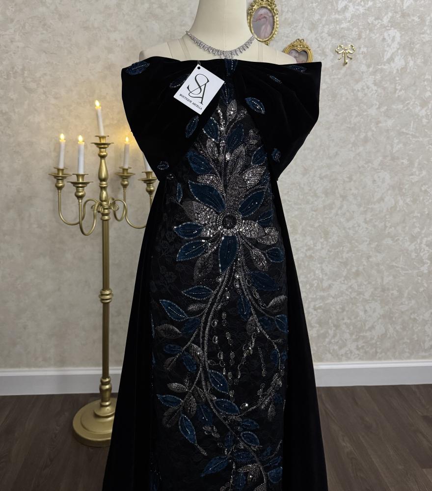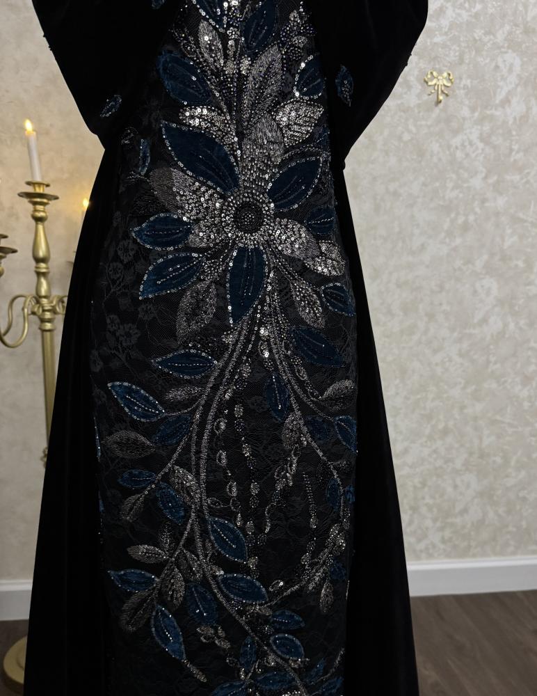 تبدو شتوية راقية من جوخ فاخر بتدخيلة دانتيل مطرز خرز شك يدوي بتفاصيل دقيقة تبرز الفخامة في كل خيط🖤!