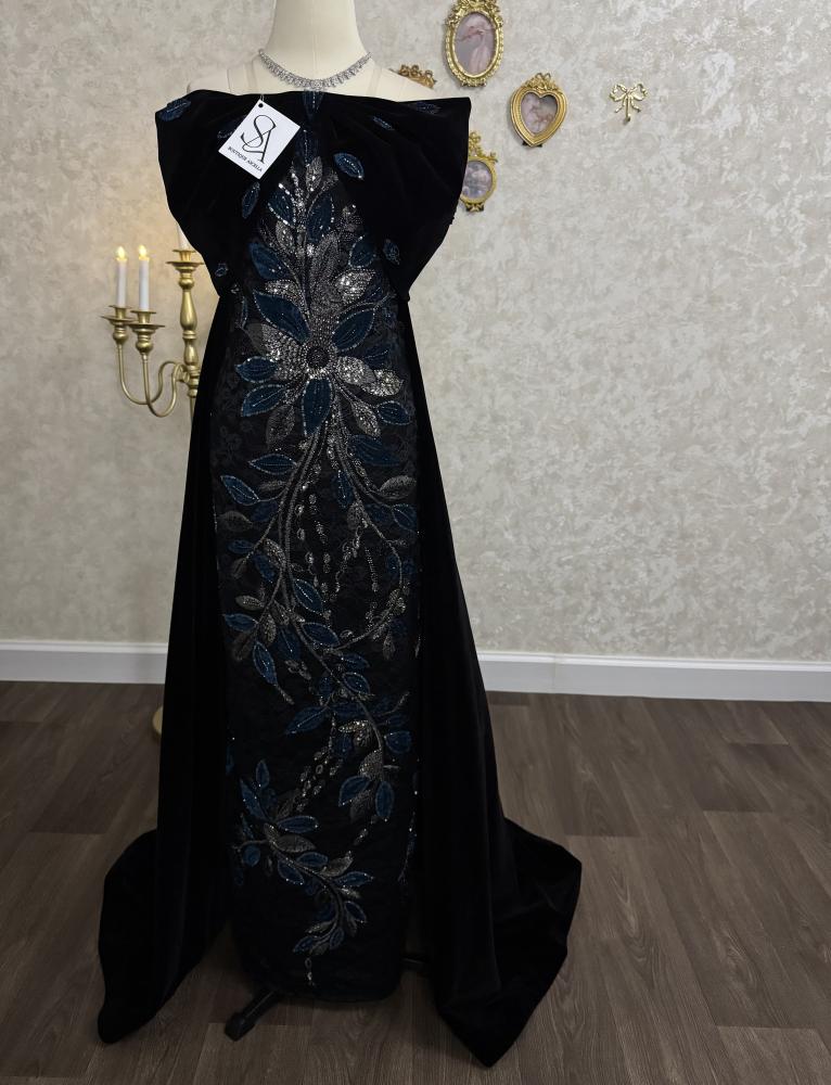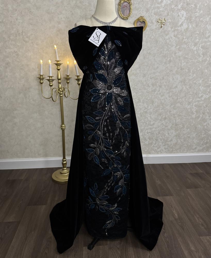 تصميم أوف شولدر أنثوي جذاب بذيل طويل ينساب بانسيابية فخمة مميز بحضور ملكي.