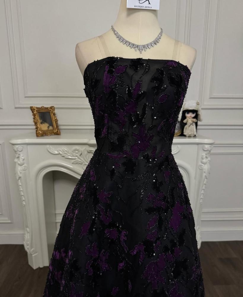 نوع القماش : قماش مخملي بلون ارجواني مع تطريزات بازرة من
