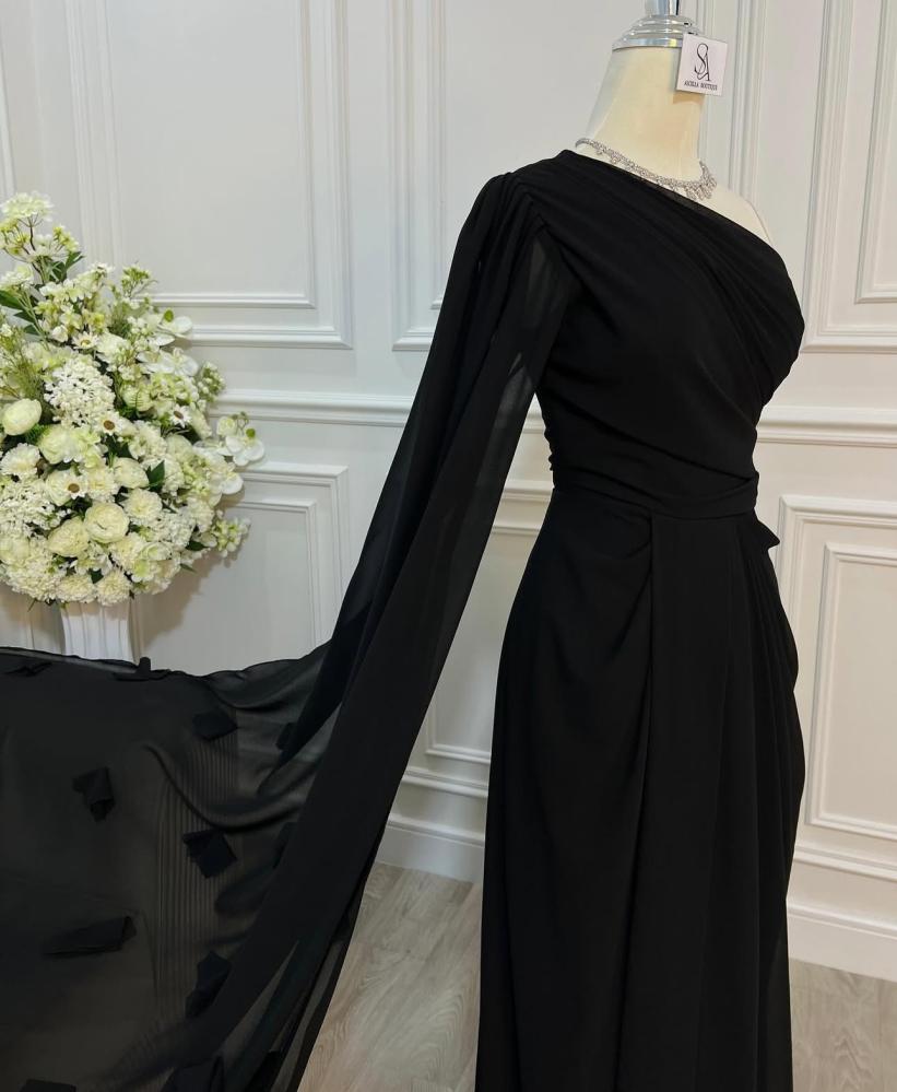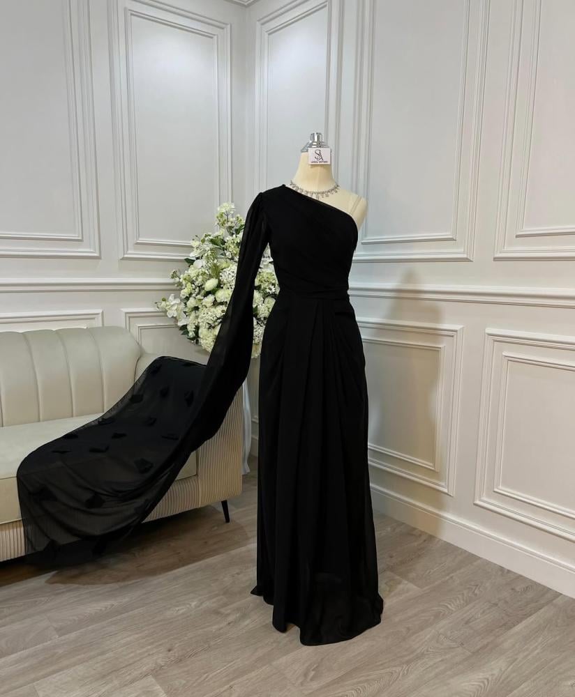 فستان ناريمان بتصميم أنيق وانسيابي مصنوع من قماش شيفون جورجيت بتفصيل جميل يمنحه حجماً وجاذبية خاصة. يتميز بلونه الاسود الراقي وطوله 60 انش ، مما يجعله خياراً مثالياً للإطلالات الفاخرة وبسعر 270 ريال.