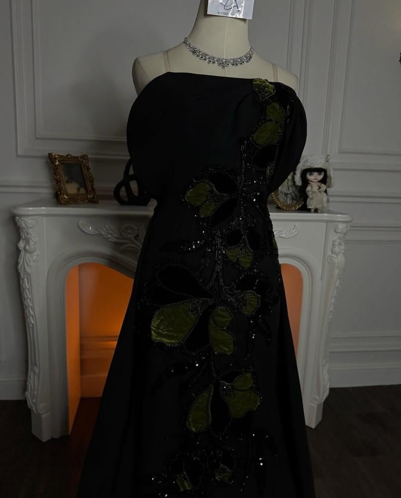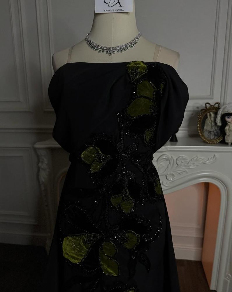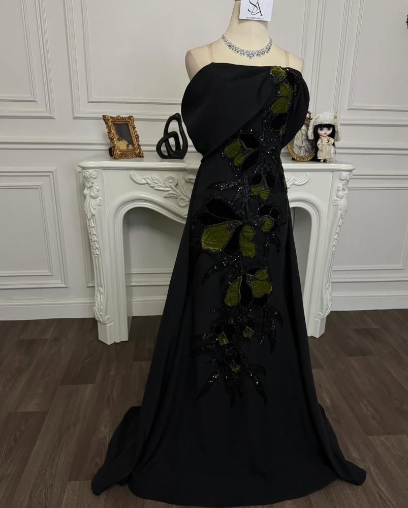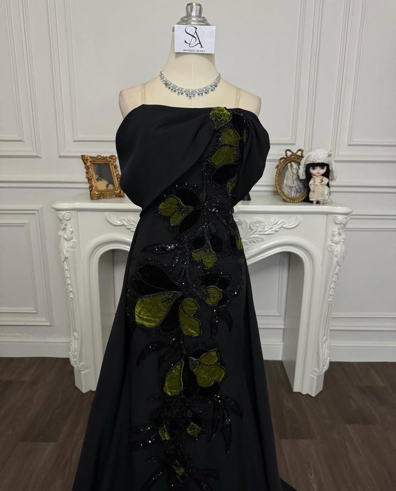 اختر هذا الفستان الماسك باللون الاسود والاخضر لتكوني محط الأنظار في أي مناسبة ترغبين في حضورها. فهو يجمع بين جمال التصميم والراحة والمتانة بفضل استخدام القماش ذو الجودة العالية.